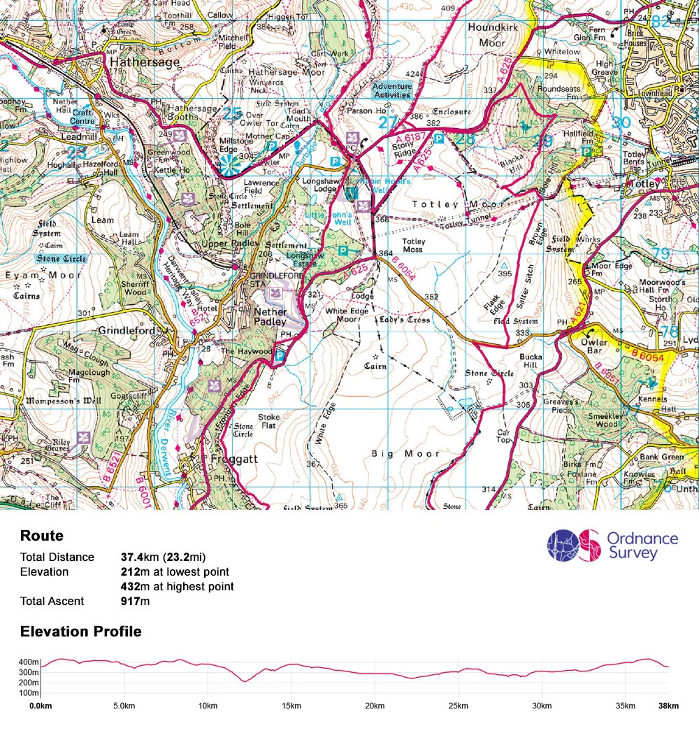 Prepare yourself for stunning views, tough climbs and gnarly descents. Starting at Fairholmes Visitor Centre you head out on a gentle ride round Ladybower Reservoir before climbing up-to Whinestone Lee Tor. Heading towards Hope and Castleton you negotiate your way down the technical rocky descent of Cavedale, before riding up the broken road of Mam Tor. The view from Hollins Cross is epic, as is the descent to Edale. On the way back see if you can spot when you’re riding on Potato Alley.